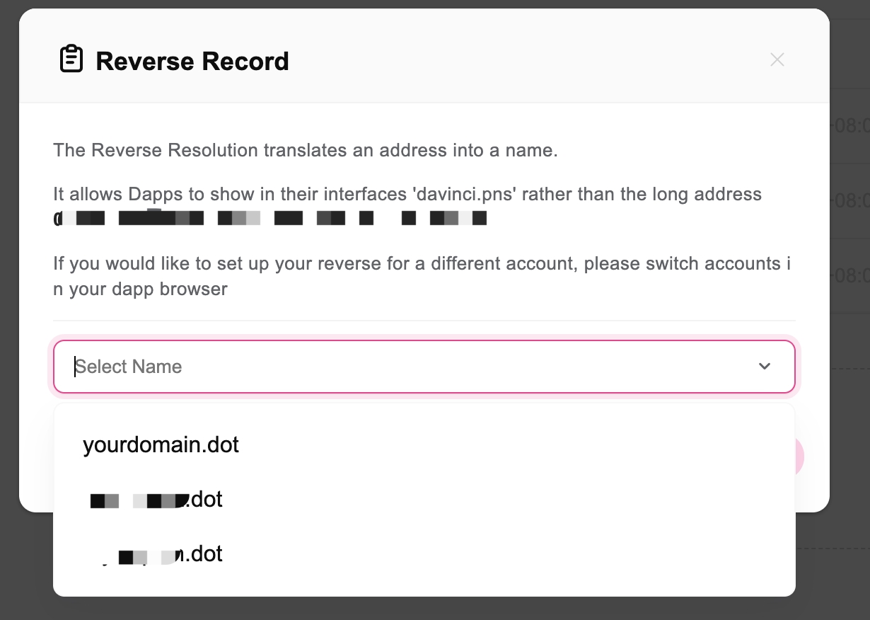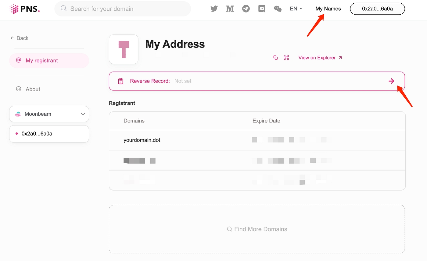 To set your Reverse Record, navigate to My Names in the header. If you have multiple domains, choose the one you prefer.